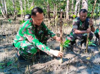 Bersama Dandim, TNI dan Persit Hijaukan Pesisir Fakfak