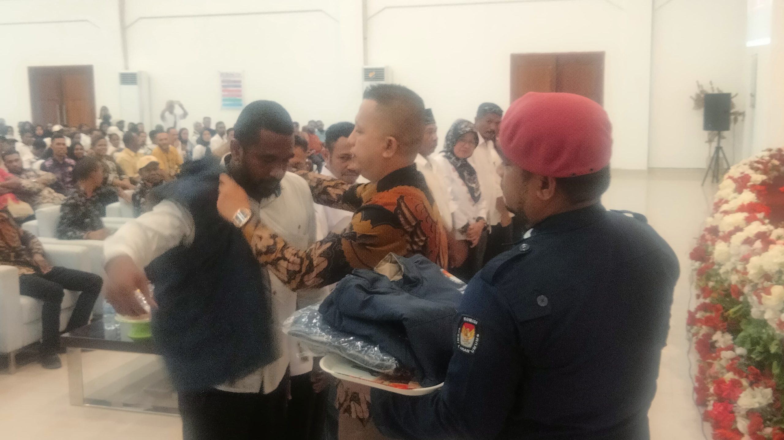 Setelah penandatanganan Pakta integritas, di lanjutkan dengan pembagian Rompi secara simbolis untuk PPD dan PPS Se Kabupaten Fakfak.