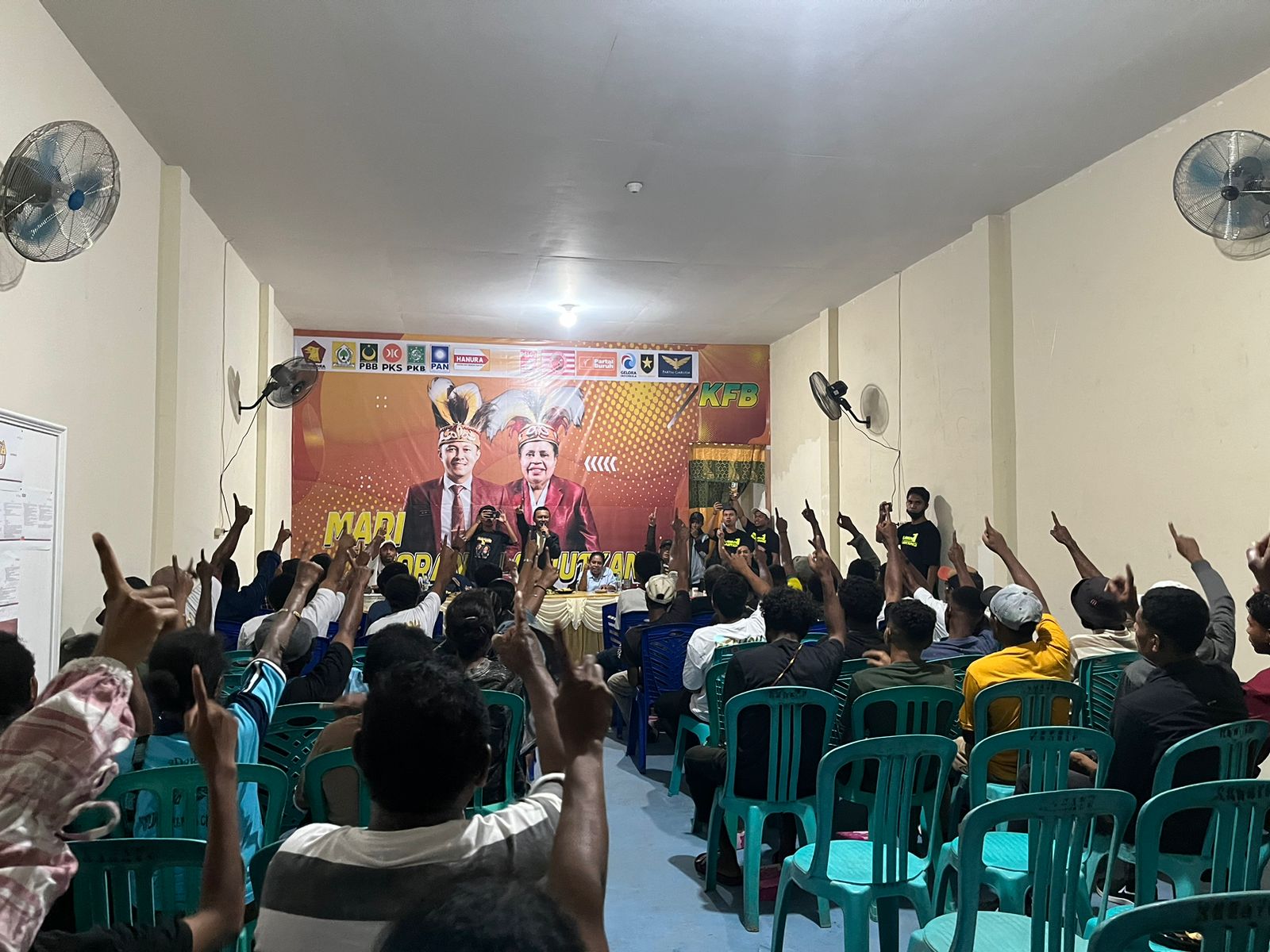 “Dengan mengarahkan semua kekuatan kemampuan untuk memenangkan Uta’Yoh pada pemungutan suara tanggal 27 November 2024 serta ikut mengawal dan mengawasi sampai dengan pelantikan sebagai Bupati dan Wakil Bupati Kabupaten Fakfak,” ujar Wa Desi salah satu pengurus Relawan Pelantang membacakan deklarasi dukungan di hadapan calon Bupati Untung Tamsil dan Wakil Bupati Fakfak Yohana Dina Hindom.