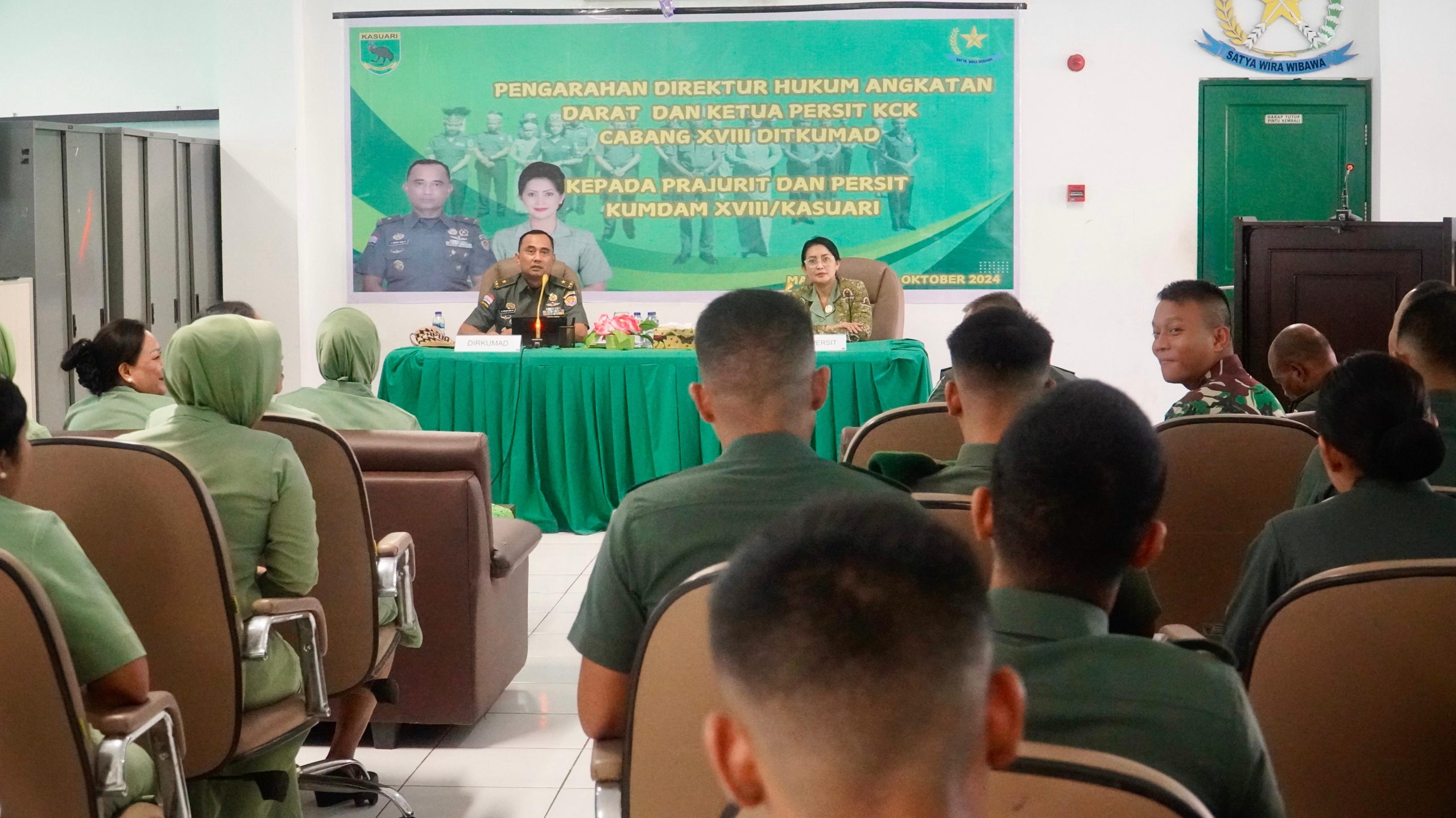 Menutup pengarahannya Dirkumad memberikan Nasihat dan motivasi kepada Prajurit dan Persit Kumdam XVIII/Kasuari untuk selalu menjaga nama baik Korps Hukum, dan memotivasi diri dan keluarga untuk selalu berdinas dengan baik, Harap Dirkumad