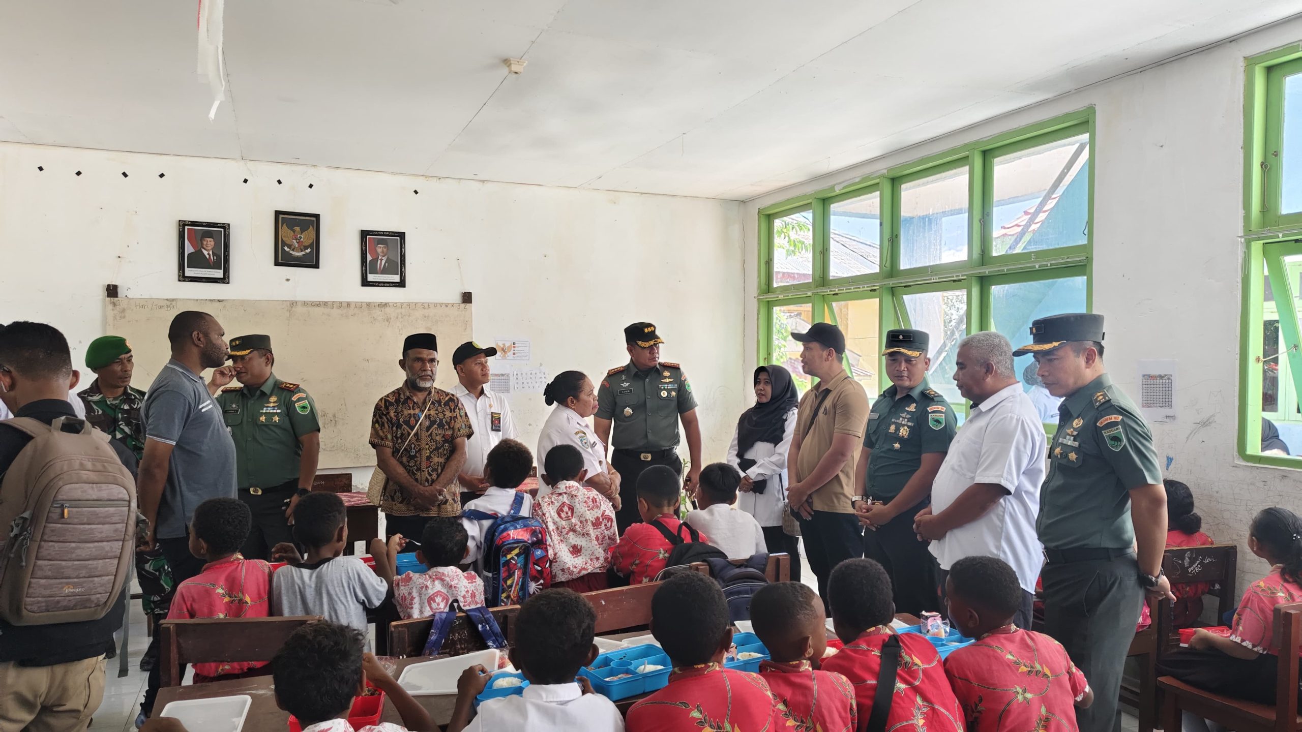 Wakil Bupati Fakfak Yohana Dina Hindom, SE, MM, bersama Forkopimda menyaksikan langsung proses pemberian makanan bergizi kepada siswa SD YPK Kapartutin yang berjumlah 57 Siswa dan juga sekolah SMP PGRI Fakfak sebanyak 157 siswa.