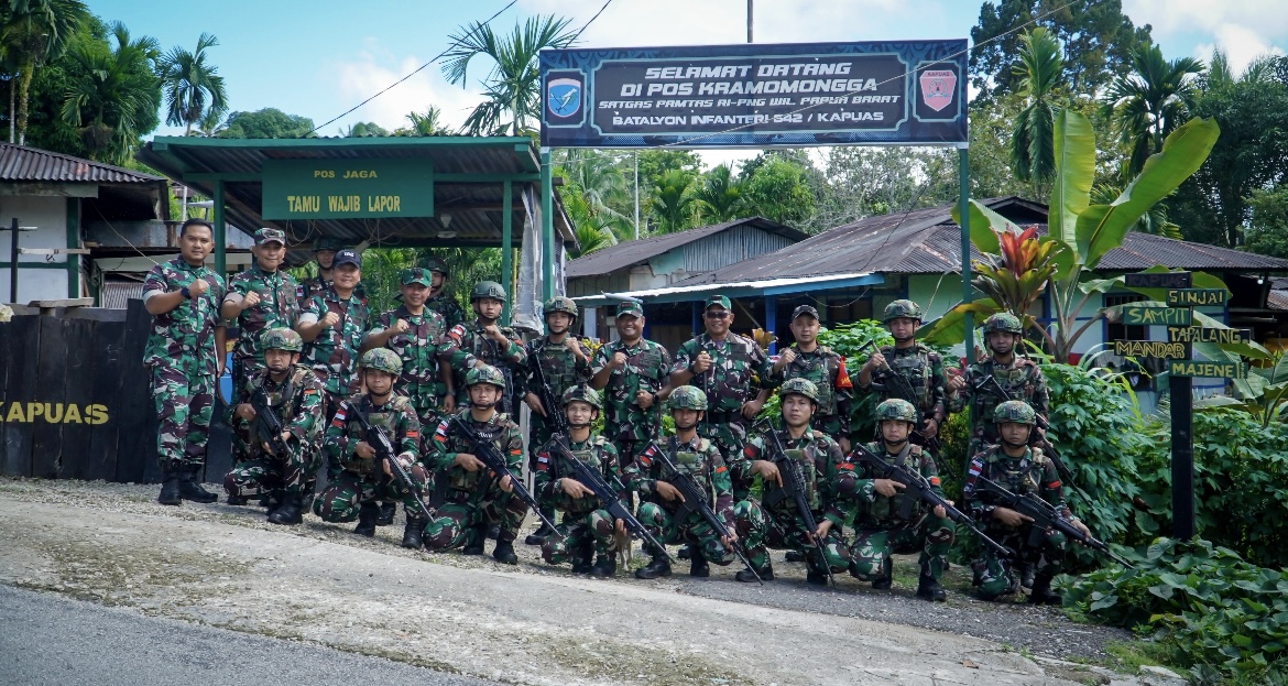EMBARANMEDIA.COM, FAKFAK – Komandan Komando Pelaksana Operasi (Dankolakops) Korem 182/JO, Kolonel Inf Irwan Budiana, S.E., M.M.. M.Han kunjungi Pos Kramamongga Satgas Pamtas Yonif 642/KPS, di Distrik Kramamongga Kabupaten Fakfak Provinsi Papua Barat, Jumat, (23/5/2025).