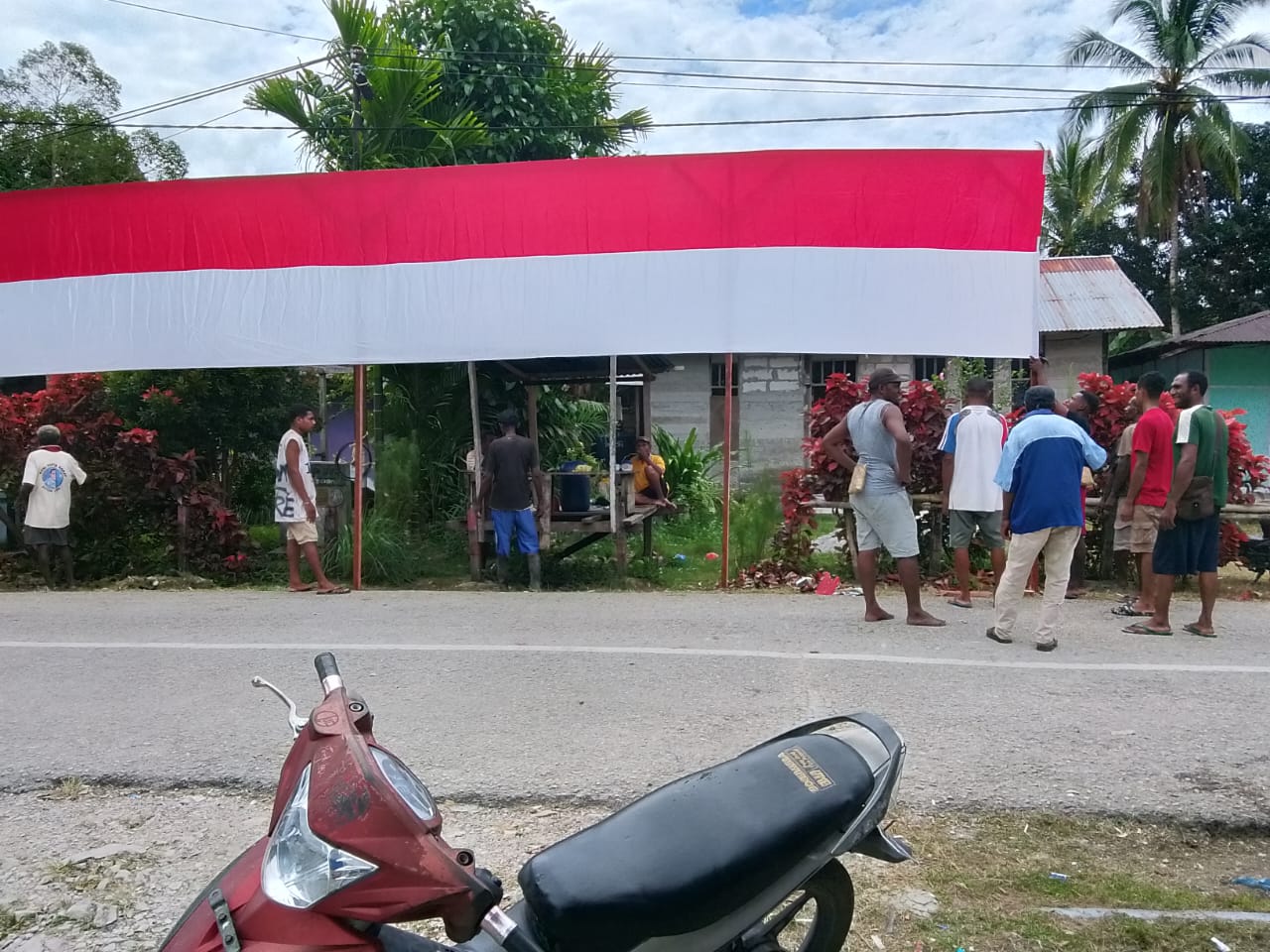 “Hari ini kami, keluarga besar masyarakat Kampung Werba Utara, menyongsong peringatan hari lahir Indonesia yang ke-80. Kami membentangkan bendera merah putih sepanjang 35 meter di lima titik, yakni satu titik di depan Polsek dan dua titik di batas kampung,” ujarnya saat diwawancarai Embaran Media melalui WhatsApp.