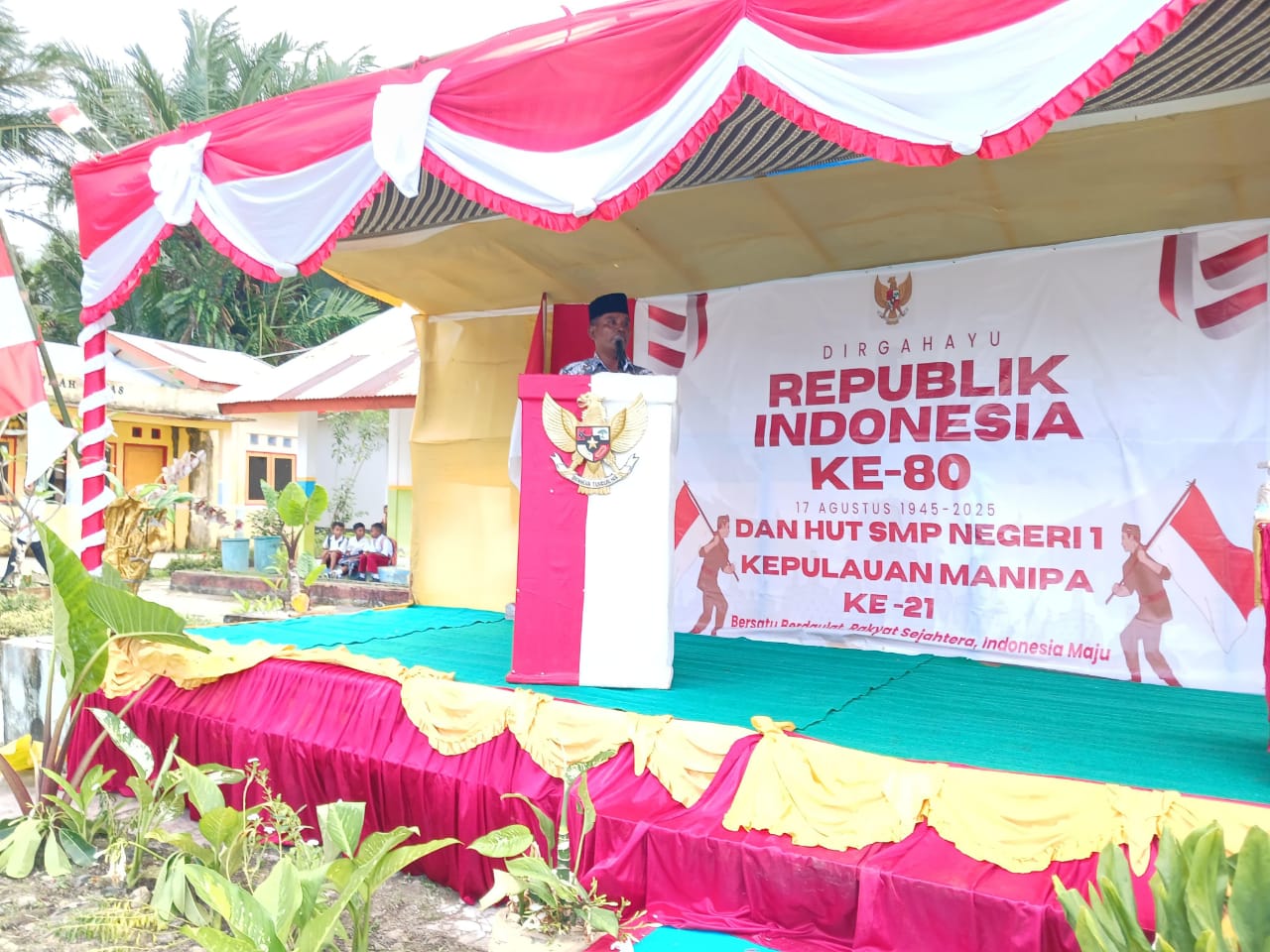 EMBARANMEDIA.COM, AMBON – Di tengah hamparan laut dan jauh dari hiruk-pikuk kota, SMP Negeri 1 Kepulauan Manipa terus berdiri tegak sebagai wadah pembentukan generasi bangsa. Tahun ini, sekolah yang berlokasi di Desa Kelang Asaude, Kecamatan Kepulauan Manipa, Kabupaten Seram Bagian Barat, merayakan Hari Ulang Tahunnya yang ke-21, Rabu (20/8/2025).