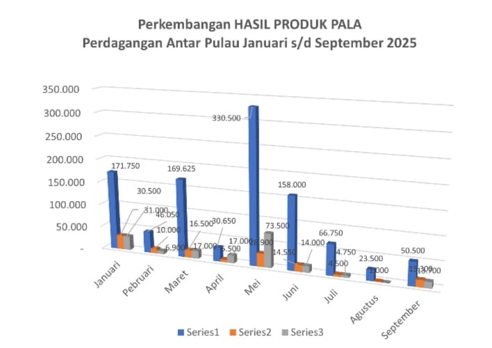 Pencapaian ini merupakan hasil dari upaya intensif Pemerintah Daerah dalam menata serta mengelola sistem retribusi pala, baik pada sektor perdagangan antar pulau maupun penjualan bibit pala bersertifikat. Kesadaran para pelaku usaha terhadap pentingnya kontribusi retribusi, ditambah dengan sistem pemungutan yang lebih transparan dan akuntabel, mendorong meningkatnya penerimaan secara konsisten.