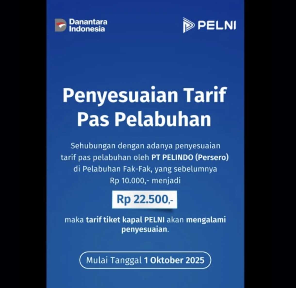 Penyesuaian tarif dari Rp10 ribu menjadi Rp22.500 tersebut merupakan komitmen bersama antara Pelindo Pusat dan Pelni Pusat. Tujuannya jelas: meningkatkan kualitas fasilitas layanan di pelabuhan-pelabuhan, khususnya di Fakfak yang selama ini dinilai cukup tertinggal dibandingkan daerah lain.
