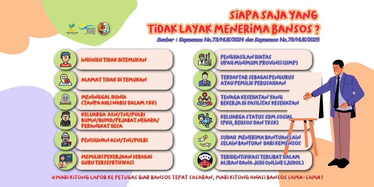 Berdasarkan ketentuan tersebut, penerima bansos tidak layak mencakup: