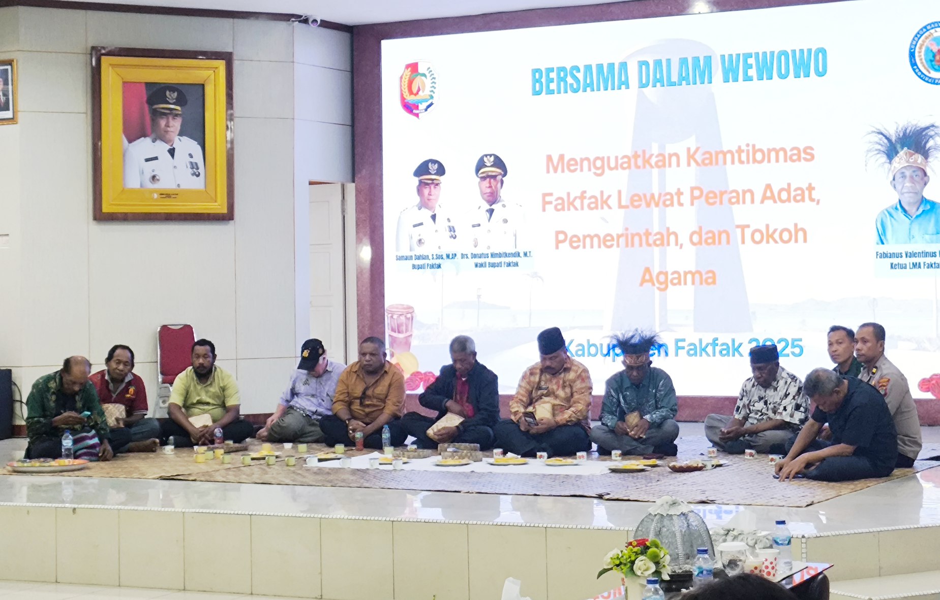 EMBARANMEDIA.COM, FAKFAK – Lembaga Masyarakat Adat (LMA) Kabupaten Fakfak menggelar kegiatan adat wewowo atau duduk bersama di atas tikar, sebagai ruang evaluasi dan konsolidasi menyikapi berbagai dinamika yang terjadi di wilayah Fakfak menjelang akhir tahun.