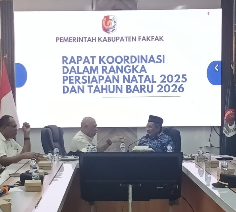 EMBARANMEDIA.COM, FAKFAK — Pemerintah Kabupaten Fakfak menggelar Rapat Koordinasi (Rakor) Persiapan Natal 2025 dan Tahun Baru 2026 (Nataru) yang berlangsung di Ruang Rapat Bupati Fakfak, Rabu (17/12/2025) pagi.