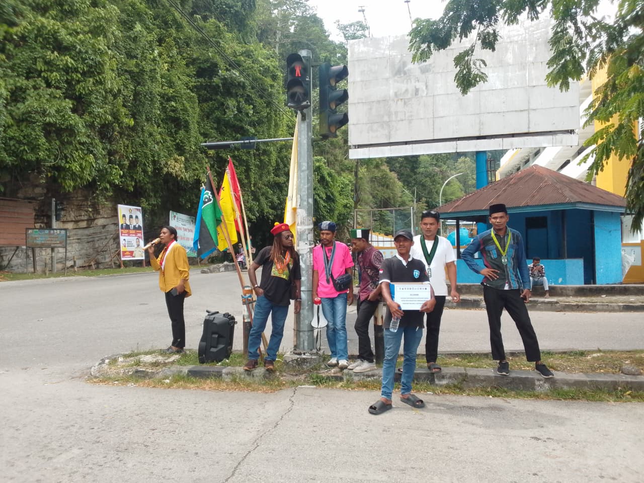 Aksi ini dilakukan oleh aliansi yang dipimpin Ketua Aliansi Supri Patur, Sekretaris Aliansi Hydar Tukuwain, Koordinator Lapangan Yopi Ninbitkendik, serta Bendahara Aliansi Nanda Holifa Putri Weripi.