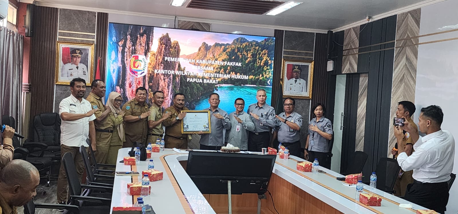 Piagam tersebut diserahkan oleh Kepala Kantor Kementerian Hukum Wilayah Papua Barat, Sahata Marlen Situngkir, kepada Pemerintah Kabupaten Fakfak yang diwakili Asisten I dan Asisten II Setda Fakfak, mewakili Bupati Fakfak. Penyerahan berlangsung pada Selasa (3/2/2026) di Ruang Rapat Setda Fakfak lantai III.