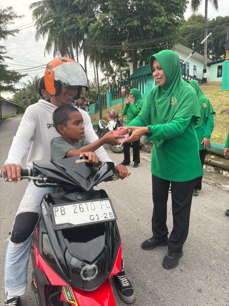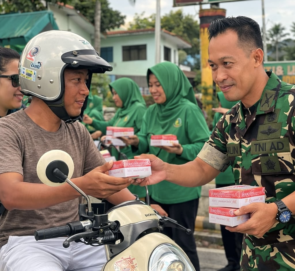 Dalam kegiatan tersebut, Dandim 1803/Fakfak bersama Ketua Persit KCK Cabang XIV Kodim 1803/Fakfak serta para pengurus turun langsung ke jalan untuk membagikan takjil kepada para pengendara dan masyarakat yang melintas menjelang waktu berbuka puasa.