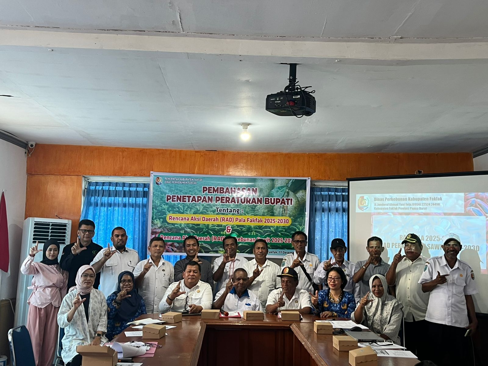 Kepala Dinas Perkebunan Kabupaten Fakfak, Widhi Asmoro Jati, ST, MT, mengatakan Peraturan Bupati tentang Rencana Aksi Daerah Pala Unggul 2025–2029 menjadi landasan operasional penting dalam mewujudkan visi dan misi pembangunan daerah sebagaimana tertuang dalam RPJMD Kabupaten Fakfak.